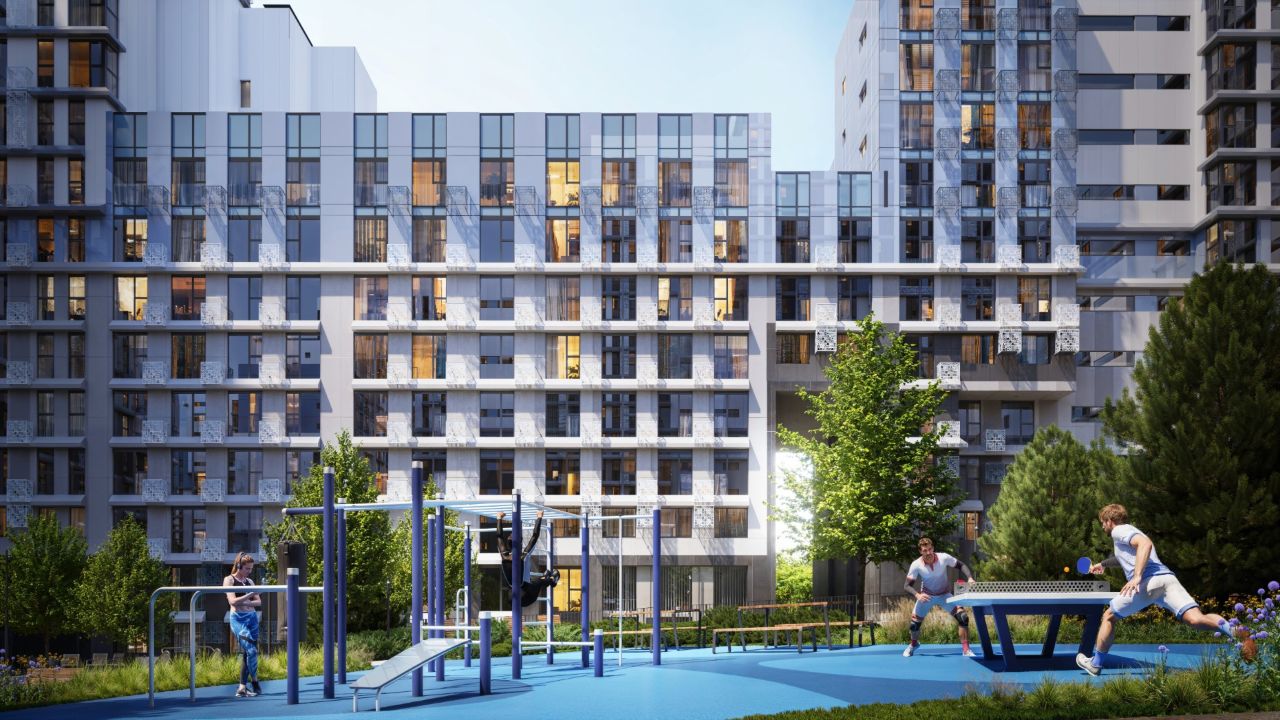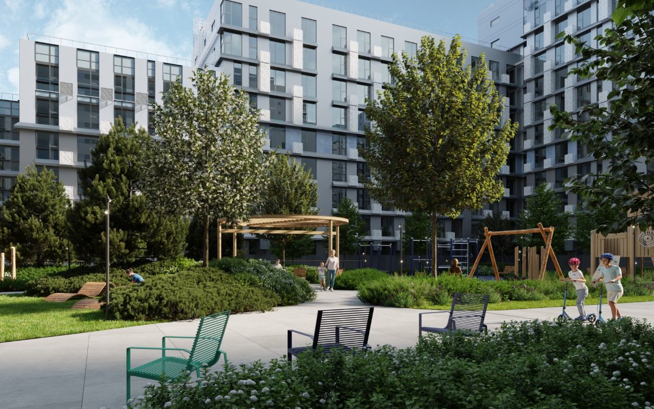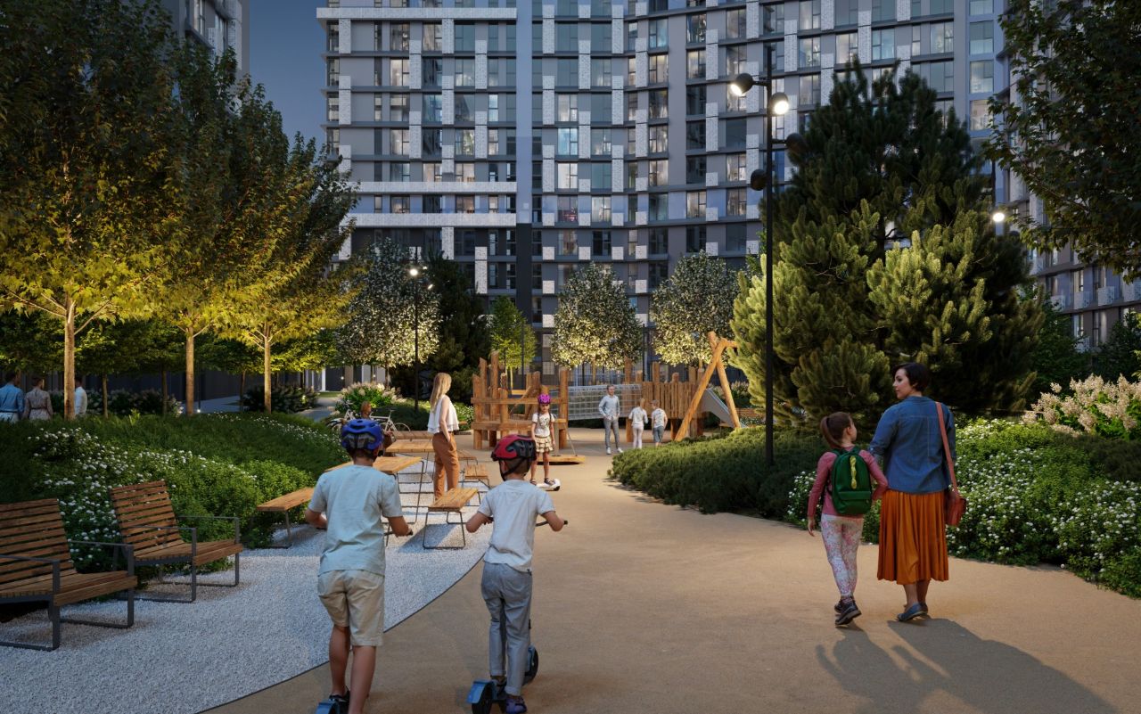 Закрытая территория комплекса, где нет машин, есть все для полноценной жизни: приватные патио для отдыха, современные спортивные и детские площадки. Это место, где ваши дети могут безопасно играть, а вы — восстанавливать силы и выстраивать гармоничный ритм жизни.